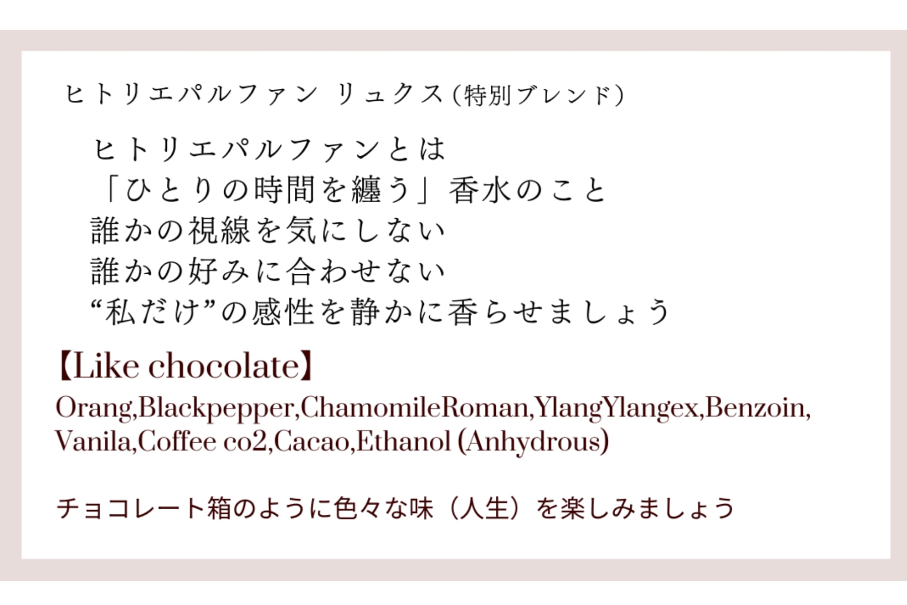 Hitorie Parfumシリーズ ”Luxe”